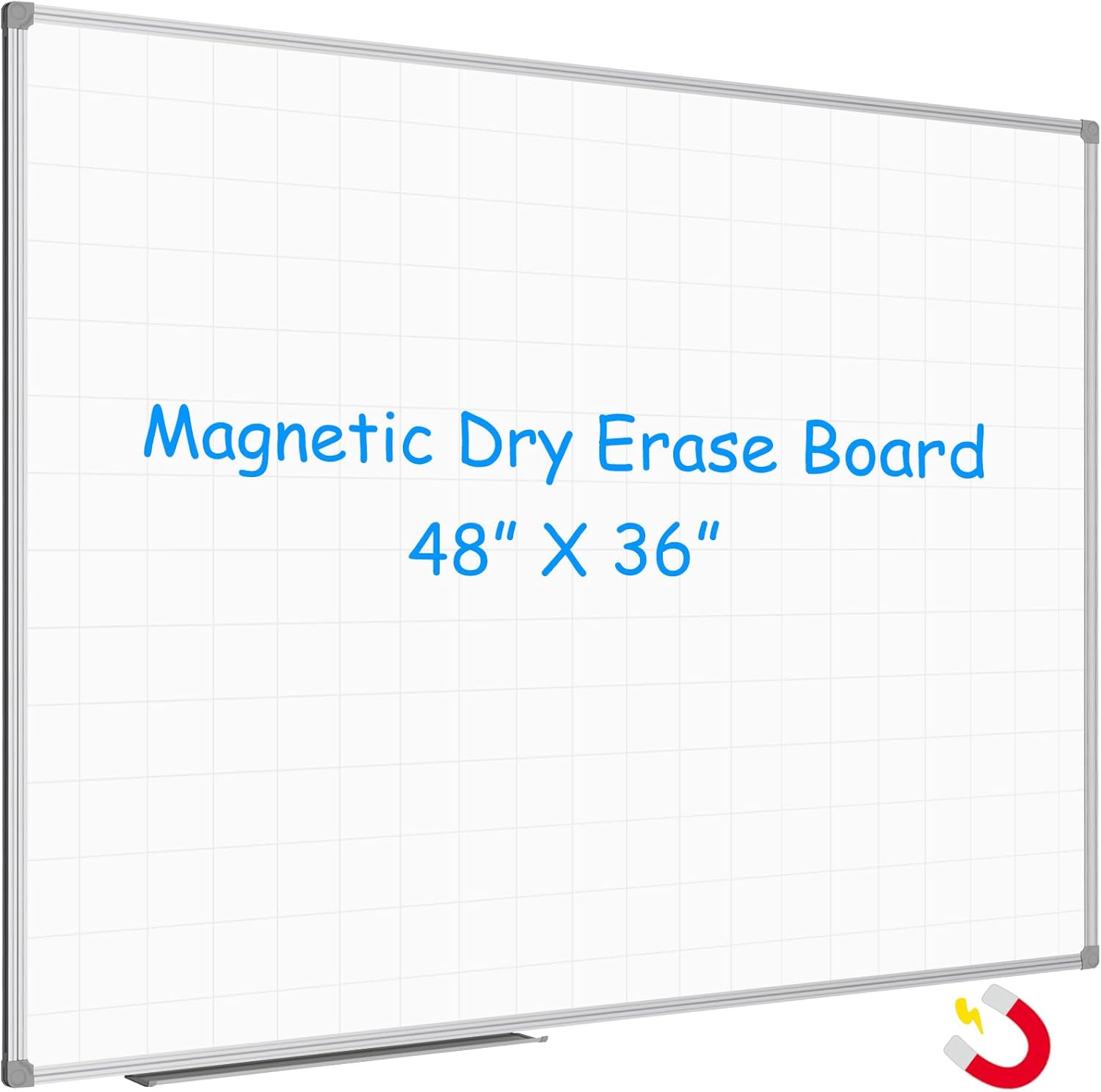 JILoffice Magnetic Dry Erase Planning Board, Grid Pattern White Board 48 x 36 Inch, Silver Aluminum Frame with Detachable Marker Tray for Office School and Home