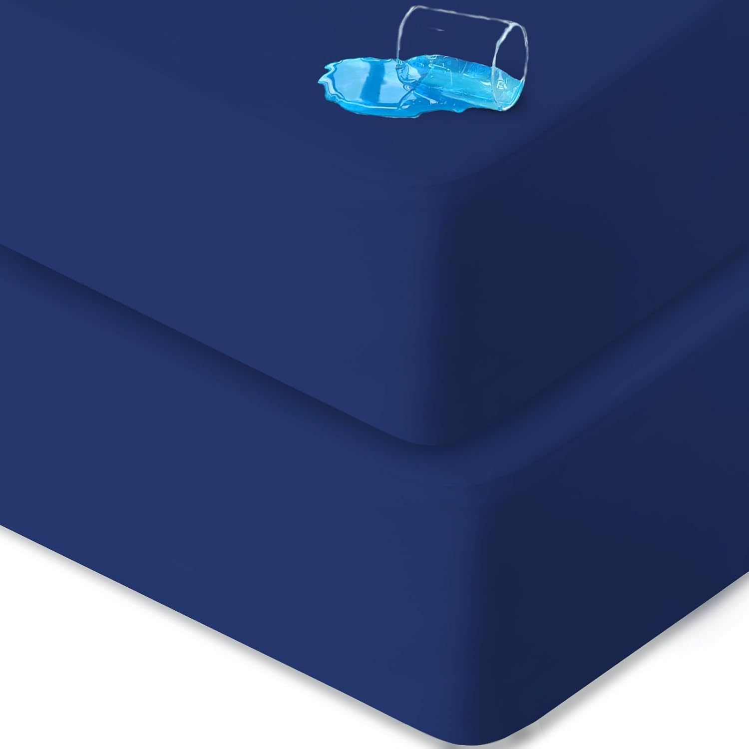 Crib Sheets Waterproof 2 Pack, Crib Mattress Protector, Toddler Fitted Crib Sheet Neutral, Ultra Soft & Breathable Toddler Bed Sheets for Boys and Girls, Navy