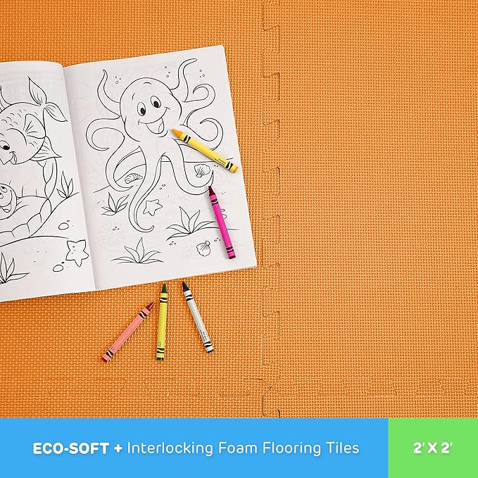 FlooringInc's 1/2" Soft Non-Toxic Baby Play Mat, Toddler Playmat, Colorful Puzzle PlayMat, Floor Mats for Kids & Babies, EVA Foam Interlocking Tiles for Nursery & Playroom | Orange, 20 Tiles, 80 Sq/Ft
