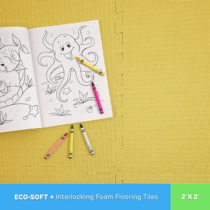 FlooringInc's 1/2" Soft Non-Toxic Baby Play Mat, Toddler Playmat, Colorful Puzzle PlayMat, Floor Mats for Kids & Babies, EVA Foam Interlocking Tiles for Nursery & Playroom | Yellow, 20 Tiles, 80 Sq/Ft