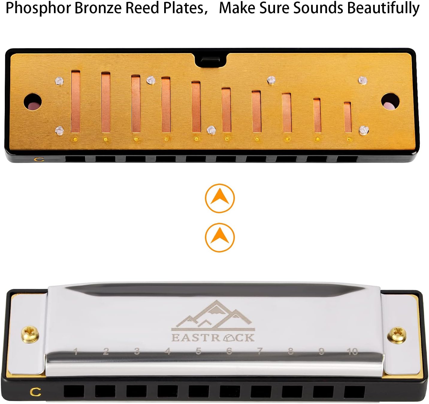 - Suitable: EastRock harmonica is designed to practicing, beginners and intermediate players. Great harmonica system suitable for blues, folk, pop classical music, jazz, country, and rock & roll.