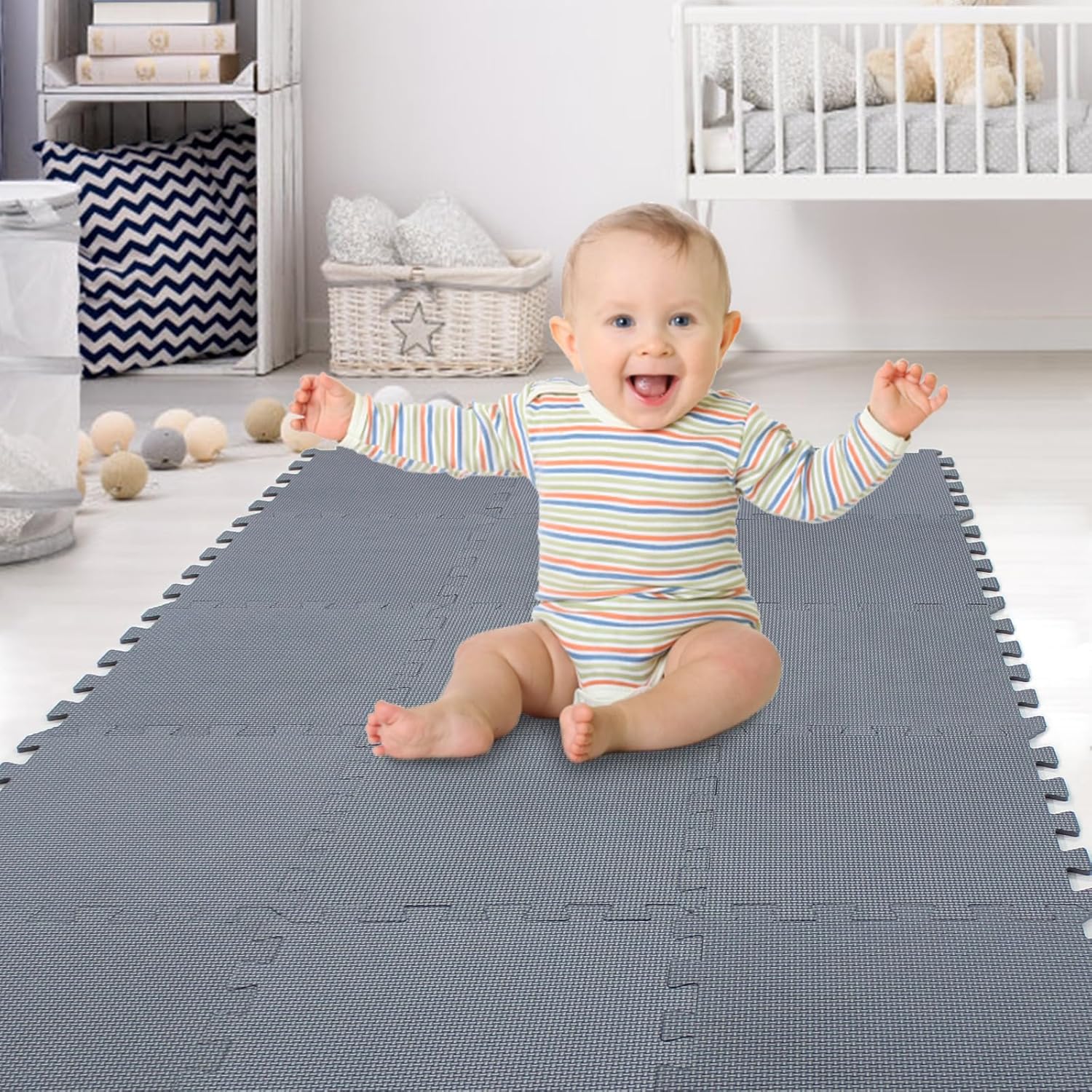 XMTMMD Soft Non-Toxic Foam Baby Play Mat | Toddler Playmat | EVA Foam Interlocking Tiles for Gym, Nursery, Playroom | 18 Squares Foam Floor Mats for Kids & Babies | Gray Jigsaw Puzzle Play Mat