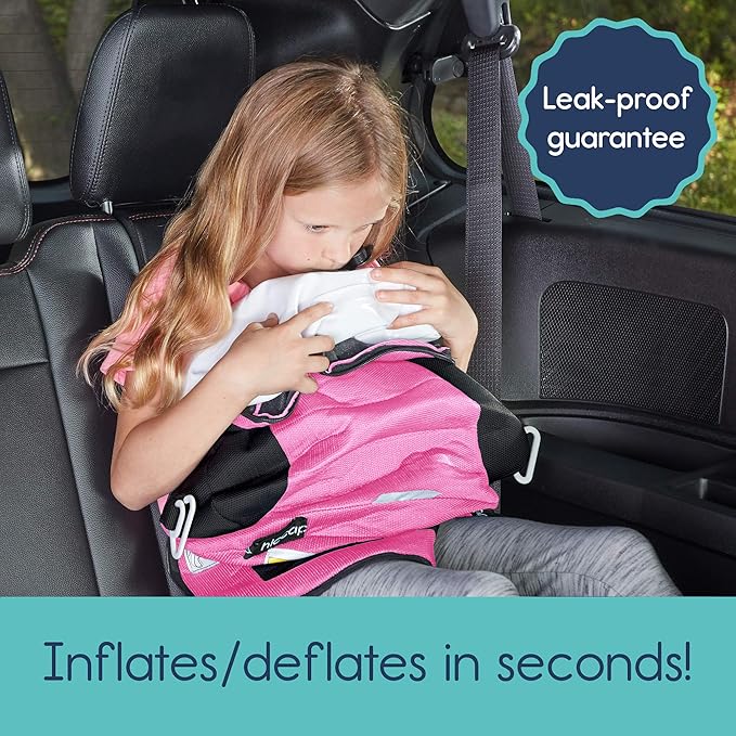 Hiccapop UberBoost Inflatable Booster Car Seat | Blow up Narrow Backless Booster Car Seat for Travel | Portable Booster Seat for Toddlers, Kids, Child | Pink/Black