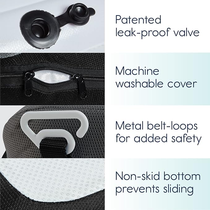 - STURDY, STABLE, SECURE | Non-skid base is designed to sit firm and steady on leather, vinyl or cloth seats. Provides soothing stability while riding and limits movement in case of an accident. Gentle on your upholstery.