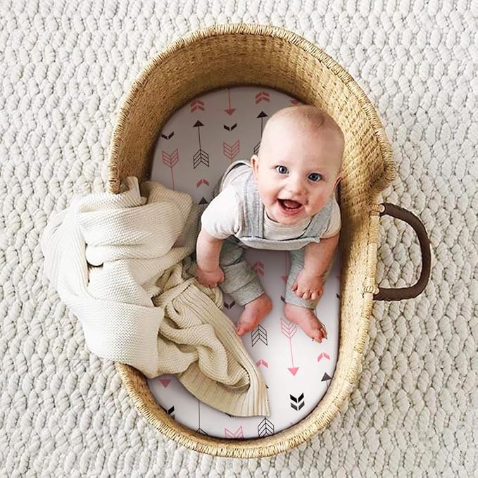 Stretch Fitted Bassinet Sheet Set BROLEX 2 Pack Cradle Sheets for Bassinet Pad/Mattress,Unisex Boys Girls,Ultra Soft,Pink Arrow