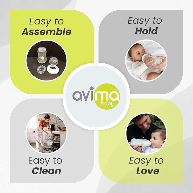 - Easy to Clean & Dishwasher Safe - Our leak-proof design is easy to use & assemble with just 4 pieces, and each Avima Baby feeding bottle is dishwasher safe using the top rack, saving you precious time for cuddles - maybe even a nap!