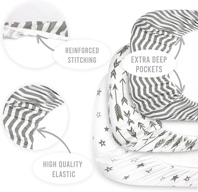 - Convenient 5-Pack: The Bublo Baby baby bedside bassinet sheets arrive in a convenient pack of 5 pieces (33 x 20 x 4-inches), featuring gender-neutral colors, cute patterns and a universal size that fits any bassinet mattress like a glove!