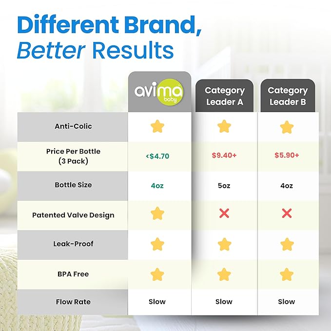 - Parent Designed, Safety First - Avima Baby Bottles came to life after a frustrated first-time mom & physician's assistant needed a solution for her newborn struggling with colic, and existing bottles just didn't cut it. We prioritize safety with BPA-free bottles for babies that meet the highest US standards for peace of mind and a happy feeding experience for you and your baby, every time.