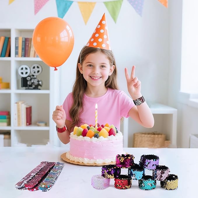 - Style: You will receive a set of 10 model uniquely colores and 20 pack bracelets.When you run fingers over the sequins, they flip to another color, change them all at once or create unique and fun color patterns in a snap