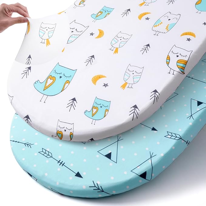 Stretchy Bassinet Sheet Set BROLEX 2 Pack Snug Fitted Cradle Fitted Sheets for Bassinet Pads/Mattress, for Boys Girls,Unisex,Ultra Soft Breathable,Arrow Owl