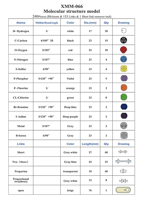 - FOR BASIC TEACHING TO CHEMIST: 240 pieces molecular model kit, including 86 atoms, 153 bonds and a disconnector tool. It is a good assistant for high school students to study inorganic chemistry, organic chemistry, and structural chemistry.