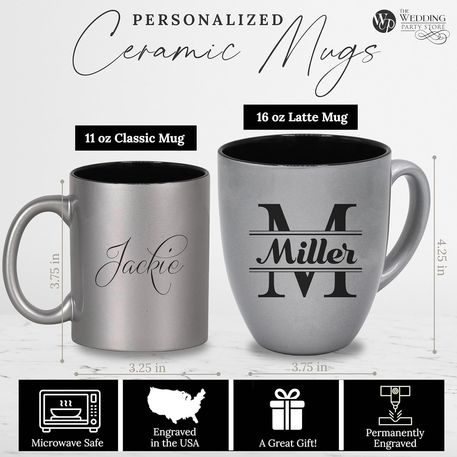 Custom Engraved Coffee Latte Mug - Personalized Coffee and Tea Cup (Silver)