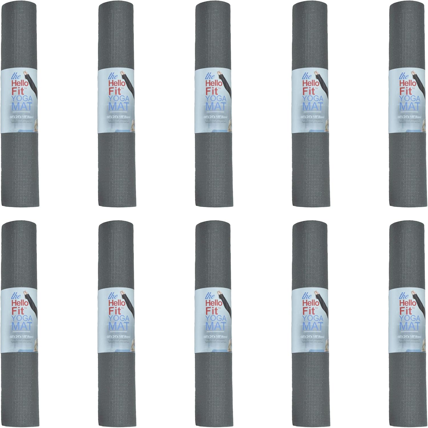 Hello Fit 10-Pack Yoga Mat, 68" x 24" Non Slip Exercise Mat, 4mm Thick Gym Mat for Fitness and Stretching, Bulk Non Toxic Yoga Mats for Schools and Studios