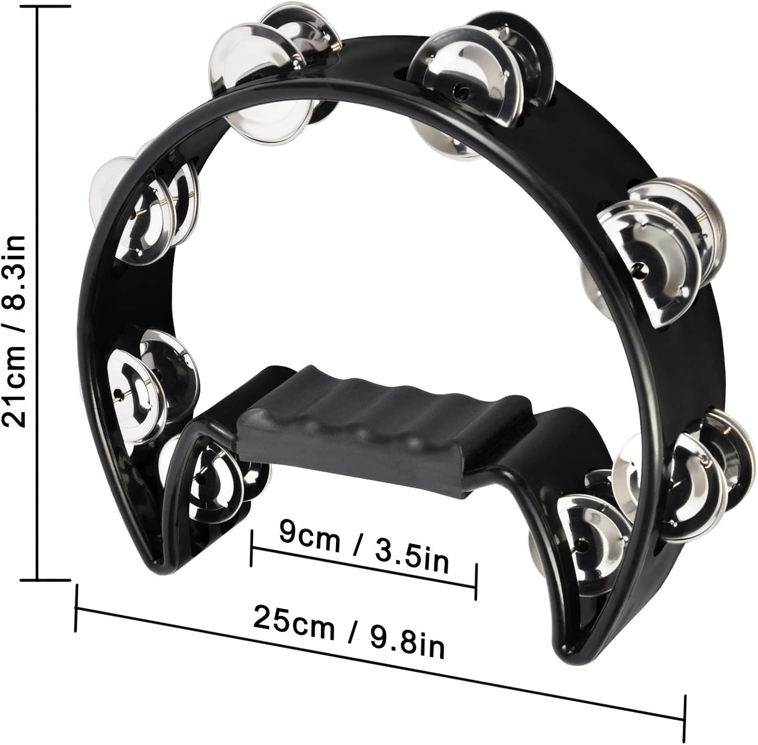 - Unique Design- This tambourine adopts a semi-circular arc appearance and a concave-convex handle design, which is non-slip and wear-resistant, stable and firm, the tambourine is not easy to slip by hands. The edge of the bell is curled, which does not hurt your hands, you can use this tambourine with confidence