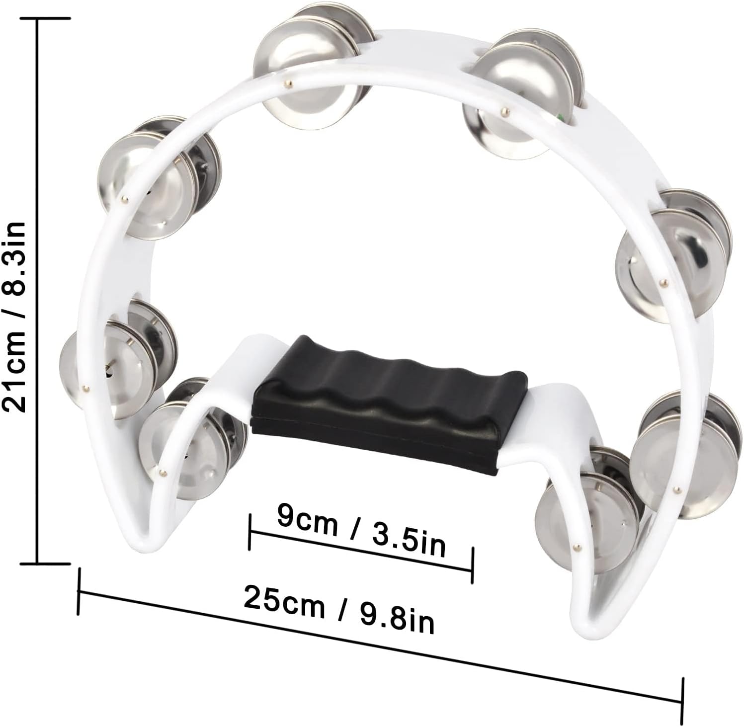 EastRock Tambourine,Metal Jingles Hand Held Percussion Half-Moon Tambourine and Egg Shakers for Kids, Adults, KTV, Party White