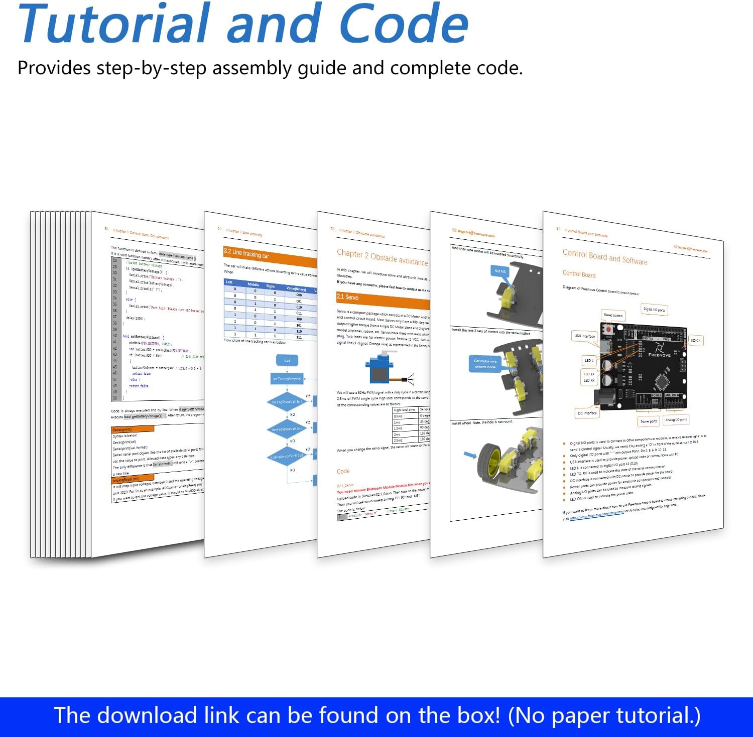 Freenove 4WD Car Kit with Remote (Compatible with Arduino IDE), Line Tracking, Obstacle Avoidance, Wireless Control App, Ultrasonic Sensor Motor Servo