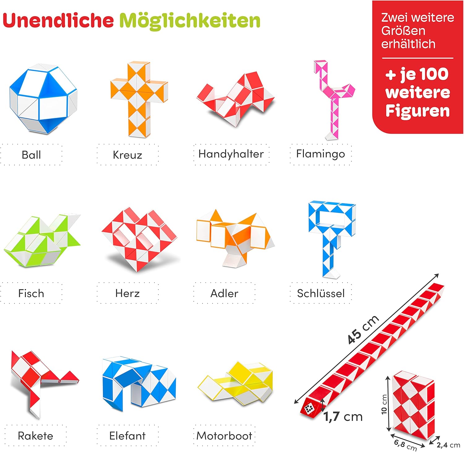 - 1 TOY WITH 100 SHAPES: Create with this snake fidget toy over 100 different figures like a dog, cat or elephant. This fidget snake cube fascinates kids and they love to play with it. Magic snake toy is for kids ages 4-8