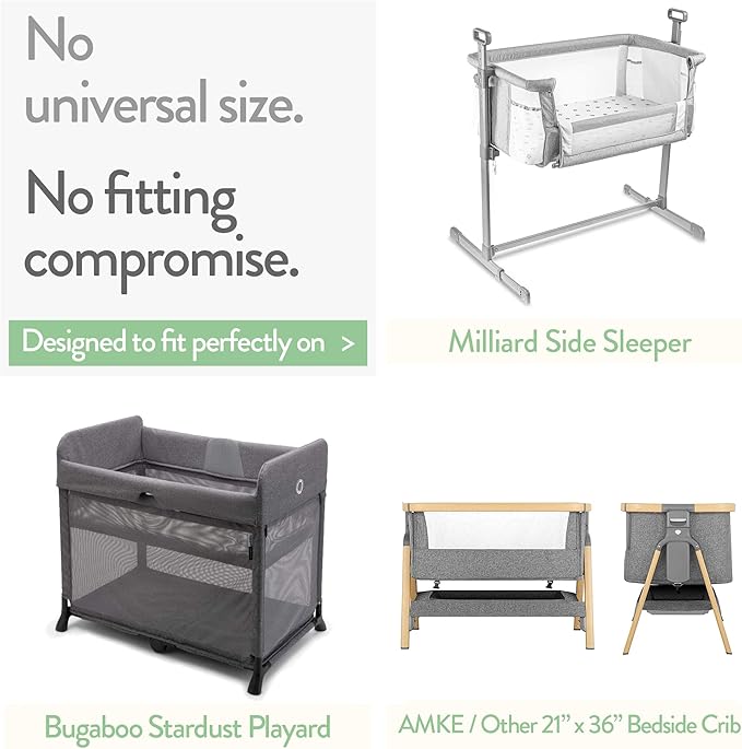 - ✔ PERFECT CUSTOM FIT – EASY ON, WON’T SLIP OFF: Every Joey & Joan baby bassinet bed side sleeper sheet fits SPECIFIC MODELS, so they easily slip onto your baby mattress, with ZERO WORRY THEY’LL ACCIDENTALLY SLIP OFF over baby’s head. This 21 x 36 inch bassinet sheet is compatible with Milliard Side Sleeper Bedside Bassinet