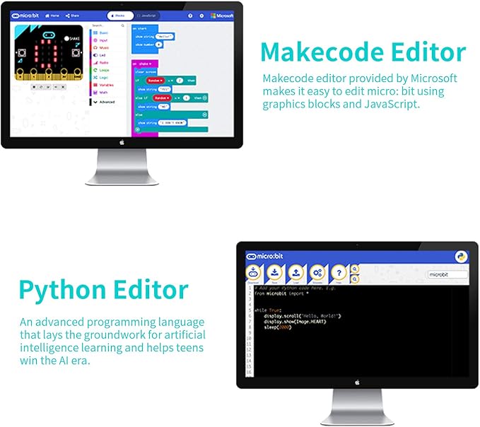 - 【Multiple Programming Languages】 This micro:bit Starter Kit supports Makecode graphical programming, JavaScript programming, Python and other programming methods. Microbit beginer can use programming to achieve what they want. It better improves interest in programming!