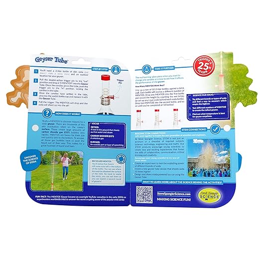 - Exciting Geyser Experiments for Kids: What a thrill to see the chemical reaction when mixing soda with Mentos candies-watch the erupting geyser soar to 30 feet tall! Includes sturdy tube & Mentos.