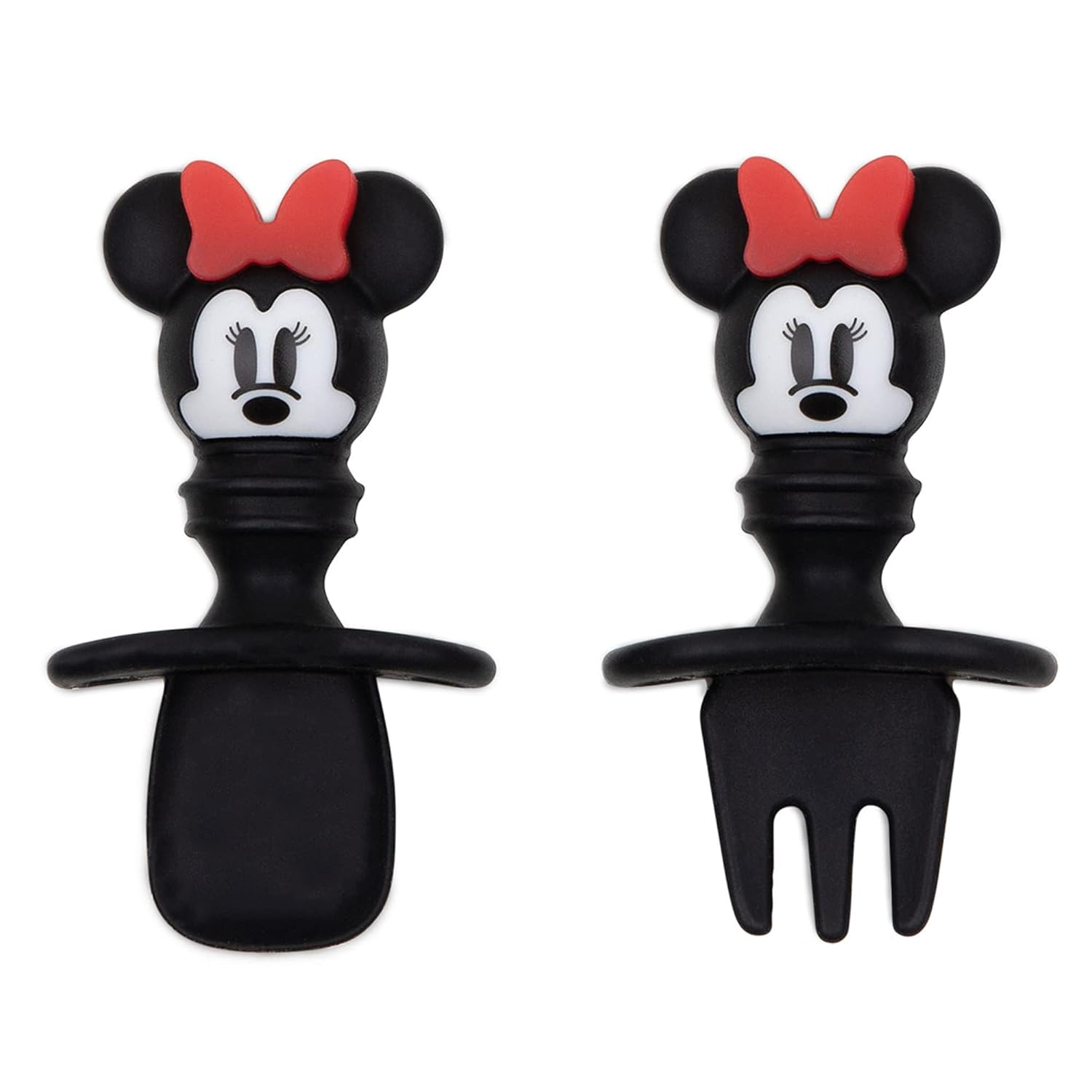 Bumkins Disney Baby Utensils Set, Chewtensils Silicone Spoons for Dipping, Self-Feeding, Baby Led Weaning, Trainer Learning, First Stage Eating, Soft Fork and Spoon, Babies 6 Months, Minnie Mouse