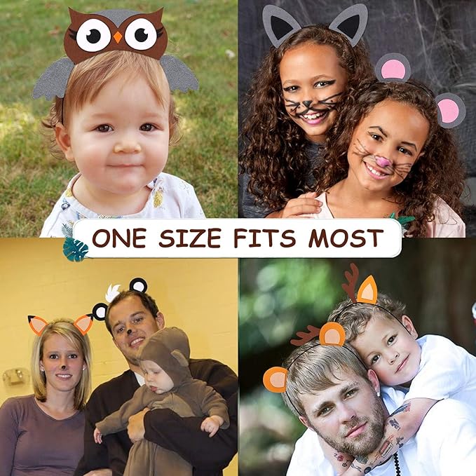 - ONE SIZE FITS MOST - The woodland animal headbands are not heavy or too tight, they will fit toddlers and older children (even adults!). Great for baby shower,birthday party favors, woodland theme costume, wild one camping party costumes, woodland animal cake smash party, forest friends photo booth props and so on.