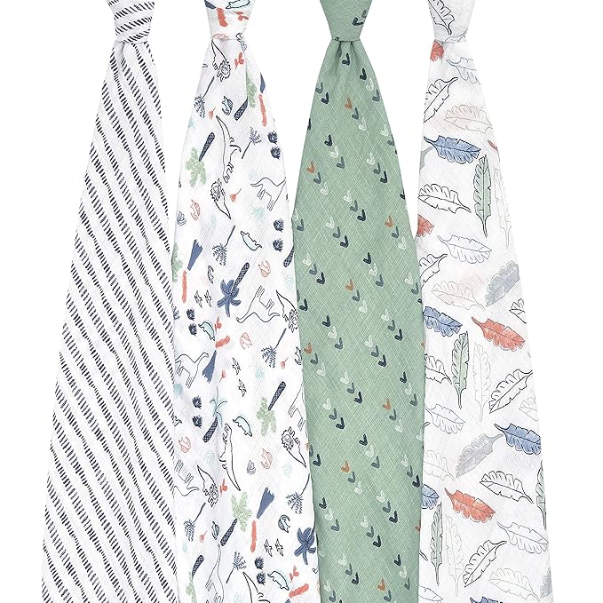 aden + anais Essentials Swaddle Blanket, Muslin Blankets for Girls & Boys, Baby Receiving Swaddles, Newborn Gifts, Infant Shower Items, Wearable Swaddling Set, 4 Pk, Dinotime
