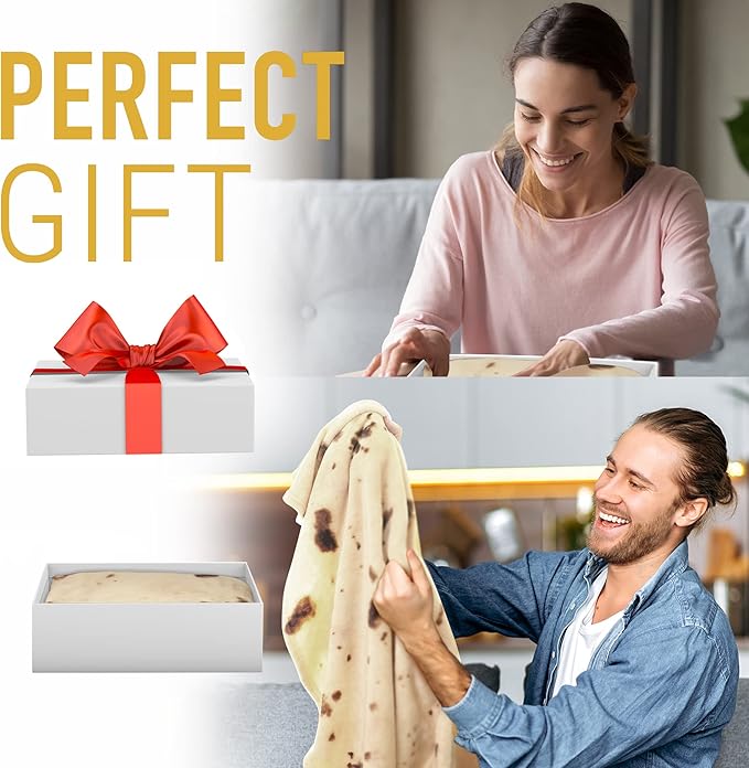 - A PERFECT FUNNY GIFT: Watch your loved ones face light up with joy after seeing a blanket that looks like a giant burrito! This fuzzy blanket makes a great Valentine day gift, Christmas gift, gag gift, white elephant gift for adults, or a birthday gift. Show your sense of humor by giving this cool gift to your foodie friend, sister, brother, children, mom or dad. It also makes an ideal pet blanket.