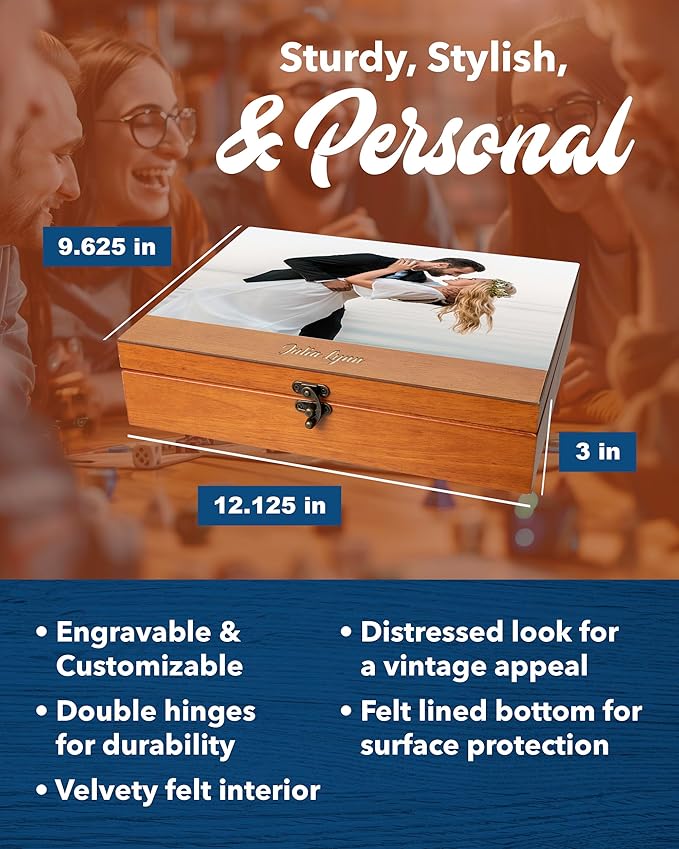- Fully Customizable Wooden Box: Make this personalized keepsake box truly yours! Choose from engraving, photo prints, or logo prints to customize your wooden keepsake box. Click "Customize Now" to upload your 300dpi, and at least 11 x 8 inches image. Permission from the owner is required for printing copyrighted content.