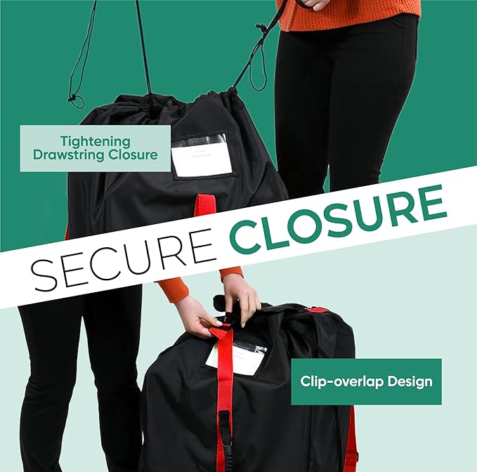 - Waterproof & Secure Protection – Designed with waterproof material, secure drawstrings, and an overlap clip closure, this bag keeps your baby's car seat protected from dirt, dust, and moisture in any travel condition.