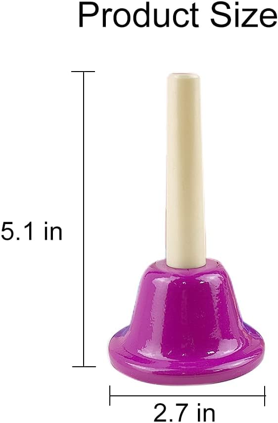 - Size: The size of one bell: 5.1×2.7 inches. The bells are all one diameter but have a diatonic pitch of the sound. These handbells are higher than General bell set.