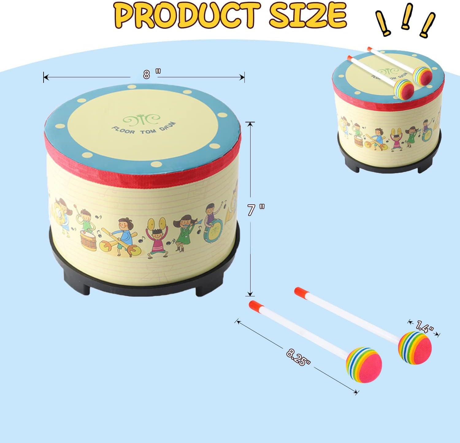 - Perfect 8 inch Floor Drum: Diameter: 20.5cm / 8inch, Height:16cm /6.3 inch. Sturdy and light weight, ideal compact size percussion instrument set for children music classes