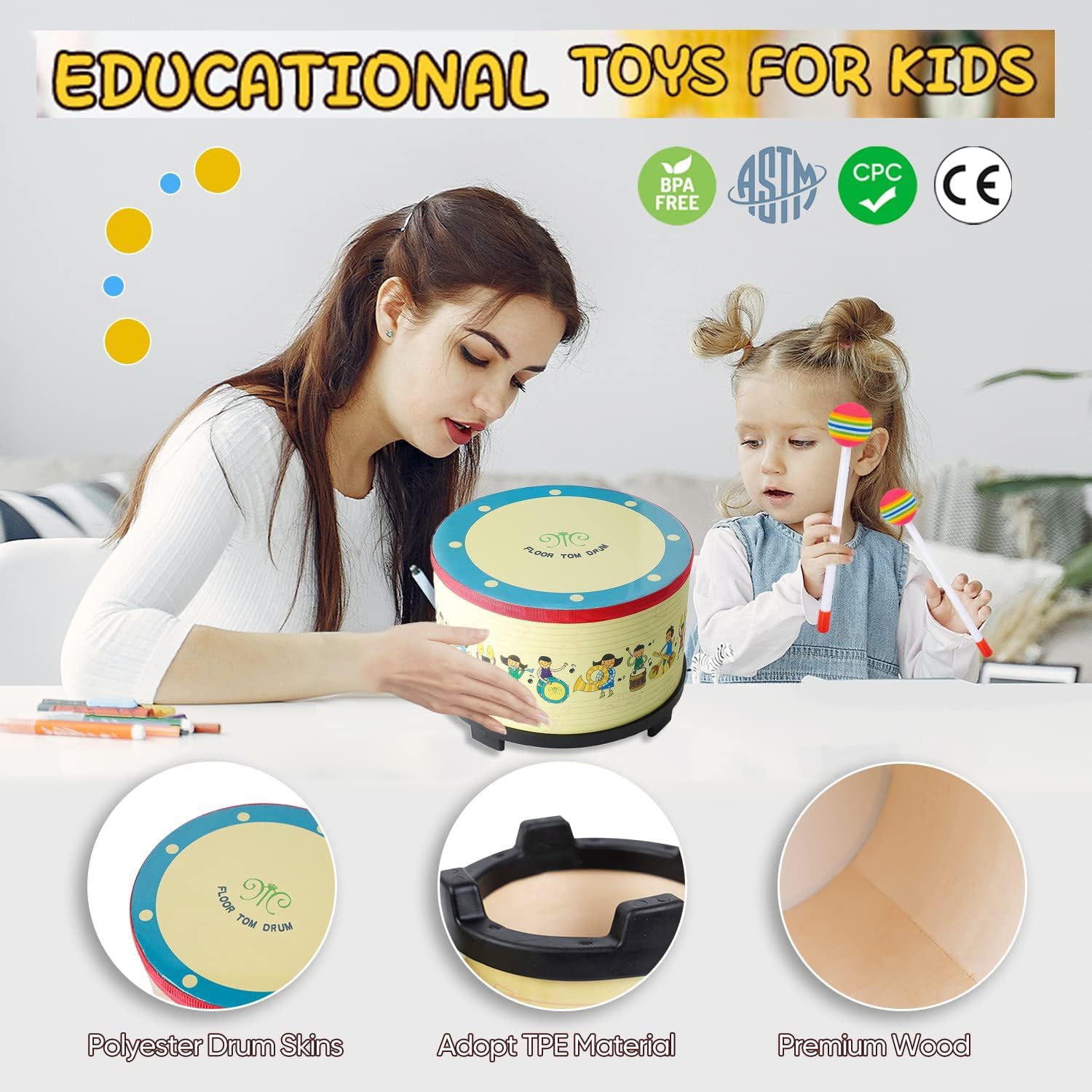 - Colorful Design Percussion Drum: Durable wood drum body wrapped with pretty interesting cartoon patterns, rich colors, all around the drum, attract children's attention, suitable for girls and boys of all ages