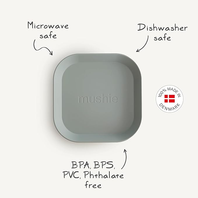 mushie Square Dinnerware Plates for Kids | Made in Denmark, Set of 2 (Ivory)