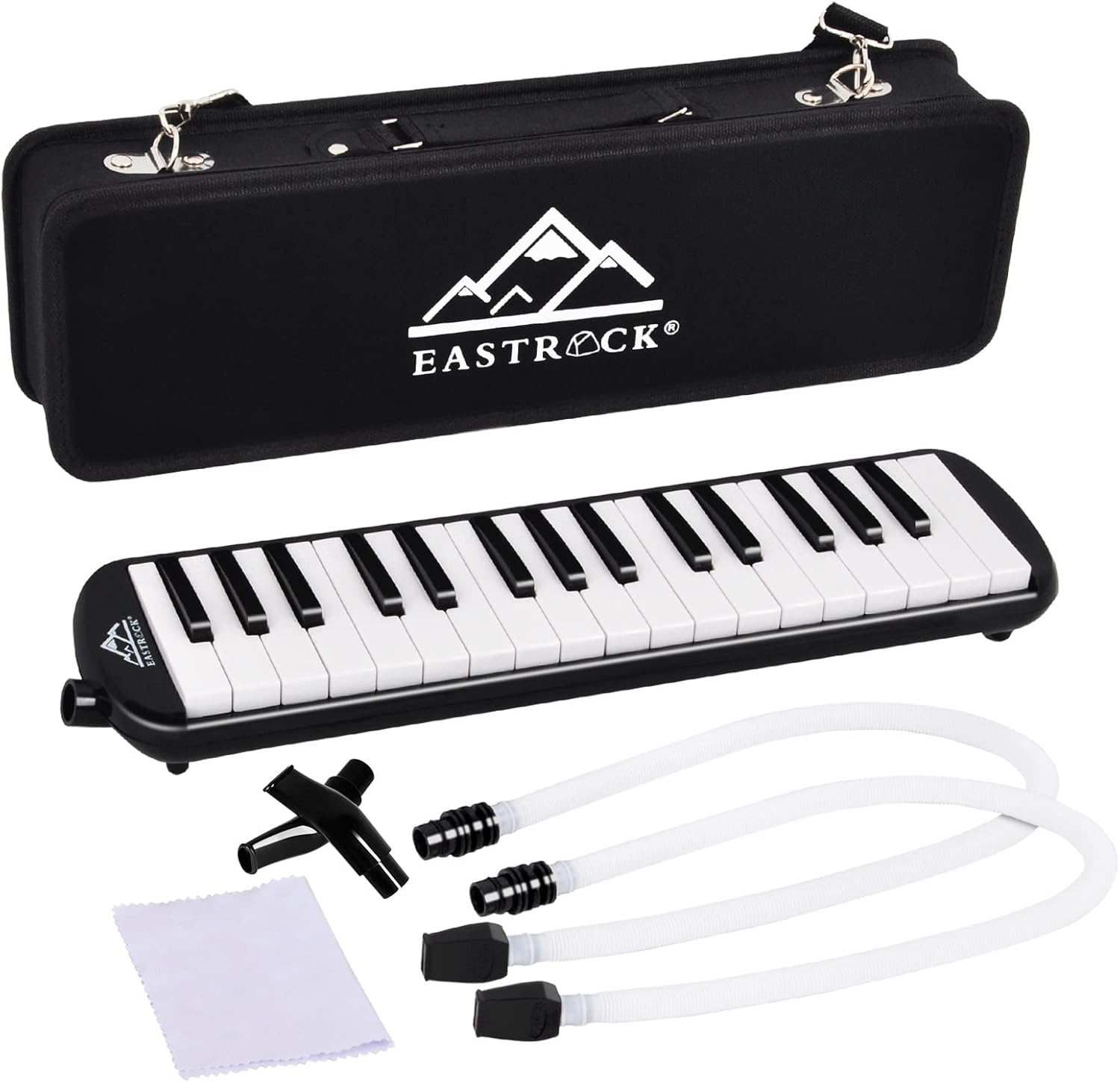 EASTROCK 32 Key Melodica Instrument Air Piano Keyboard Soprano Melodica with 2 Mouthpieces Tube Sets Carrying Bag for Beginners Adults Gift Black
