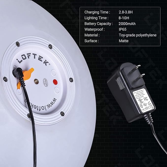 - 6-11h Lighting and Faster Charging: Upgraded 2000 battery with LOFTEK fast-charge technology, up to 6-11 hours of lighting only need 2.5-3.5 hours to be fully charged. If the battery or light bulb life is exhausted, just unscrew the screw on the bottom of the ball and replace the new base to get it back to work like a new ball again. (Base's Asin: B07TYD56SC)