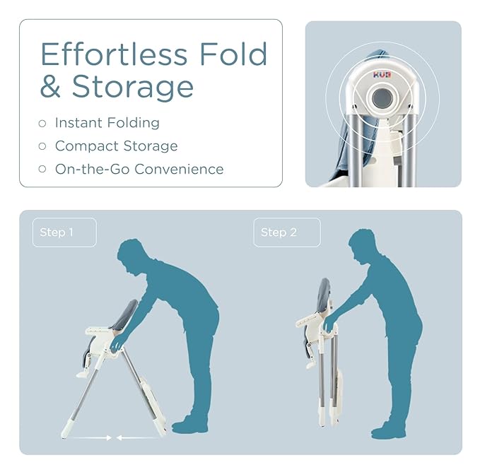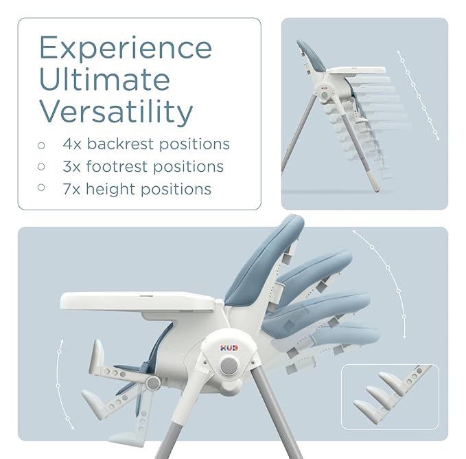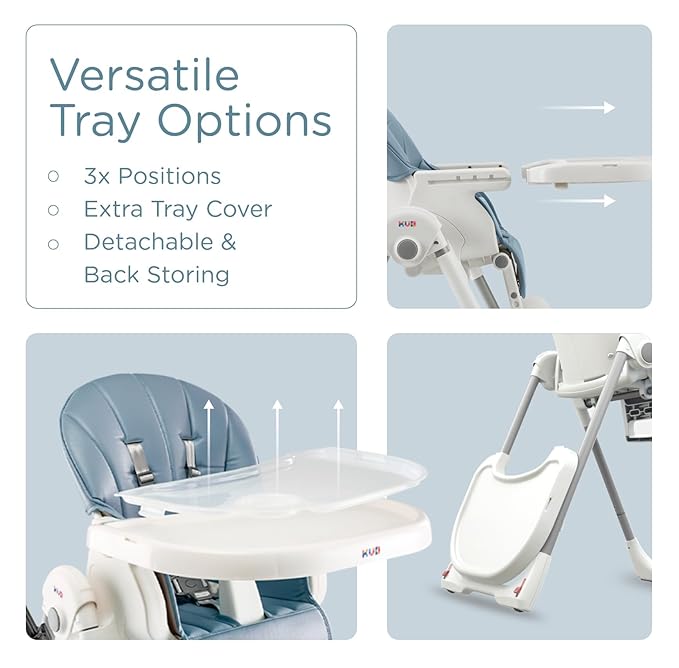 KÜB 3-in-1 Foldable Baby High Chair (Blue) | Multifunctional Infant High Chairs for Babies and Toddlers | Removable Seat & Tray for Easy Clean | 7 Height & 4 Recline Adjustable | 2 Locking Wheels