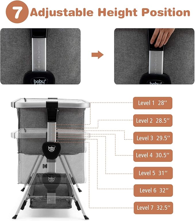 - [ 7 Adjustable Heights ] : Adjustable to heights of 15"-19.5" from bottom to mattress, our baby bedside bassinet is a great match for most beds and sofas.