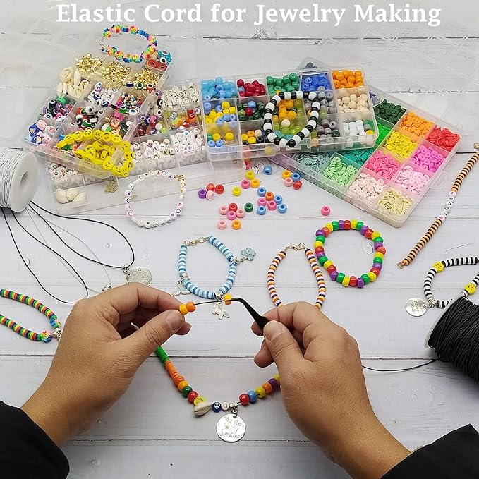 - WIDELY APPLICATIONS : Elastic string for bracelets , beading, DIY crafting, drawstring bags, bracelets, pony bead jewelry, hair ties and party hat straps.