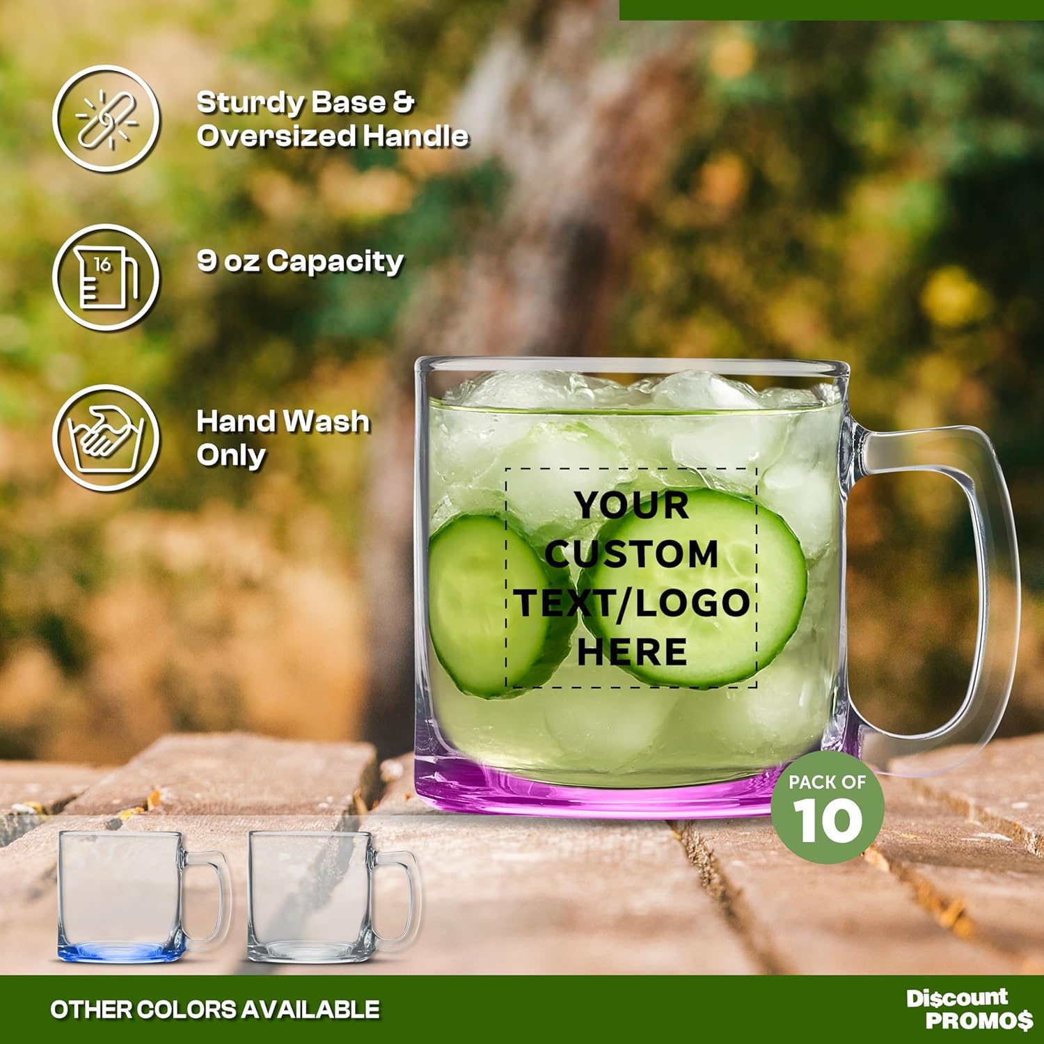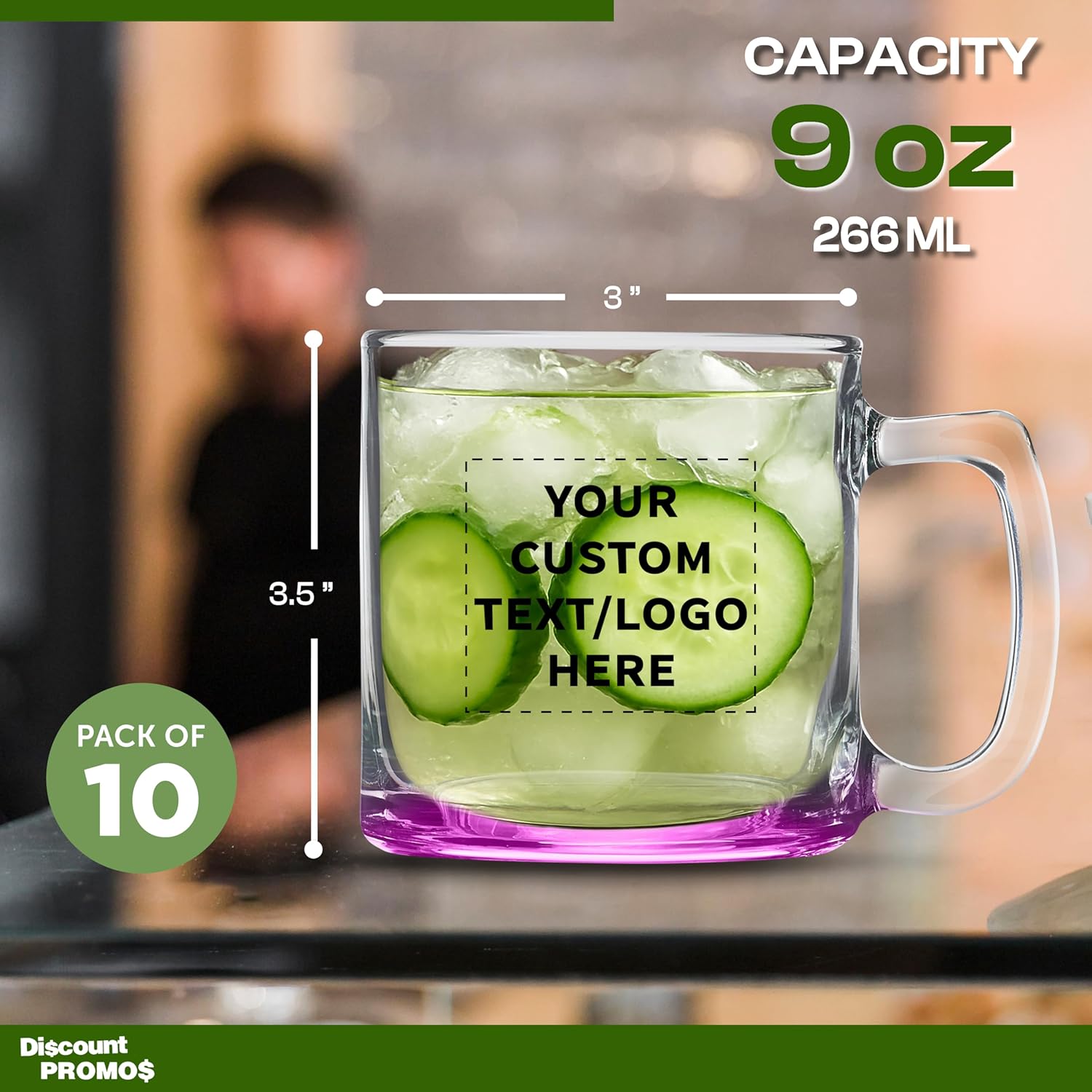 DISCOUNT PTOMOS Custom Small Glass Coffee Mugs 9 oz. Set of 10, Personalized Bulk Pack - Perfect for Coffee, Tea, Espresso, Hot Cocoa, Other Beverages - Pink