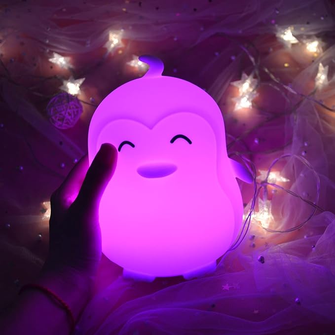 Large Penguin Night Lights for Babies Bedroom Light, lamp Kids, Toddler Nursery lamp Soft Decorative Lamps - Break Resistant, Eye Caring, Adjustable Brightness & Color, Time Setting - Large