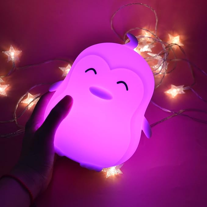 - ☀【Large size safety light】: The size of this penguin night light is about 4.92*5.11*6.69 inches, which is larger than the general animal shape night light. The Glinrui squeezable night light has a comfortable and soft touch. It has no sharp edges, no glare, no heat, it can be safely placed on the bed and table, it is perfect for night lighting for babies and toddlers, boys, girls, students, women, the elderly.