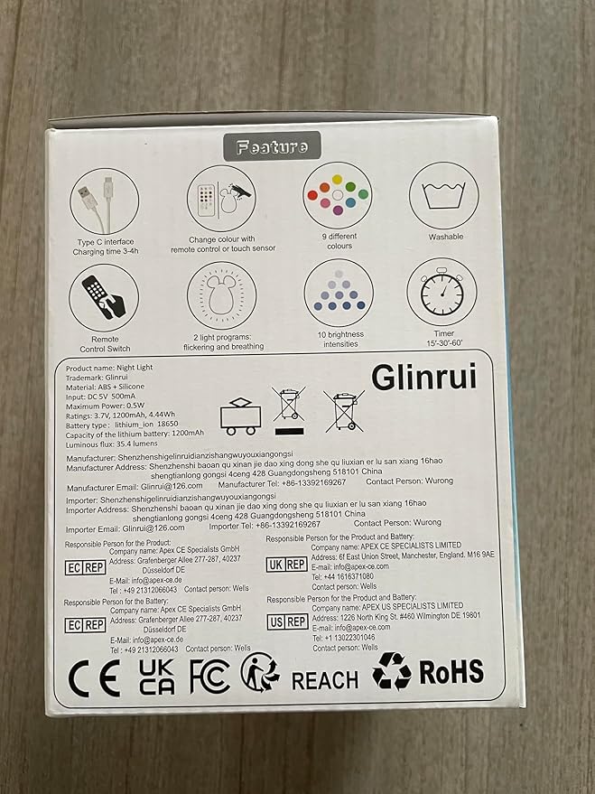 - ☀【Multi-purpose】: Glinrui children's color silicone night light is suitable for babyroom, bedroom bedside light, nursing light and decorative lights. Due to the design without socket, it can be used as a travel lights, camping tent lights etc. In addition, it can also be used as a gift to kids, classmates, families.