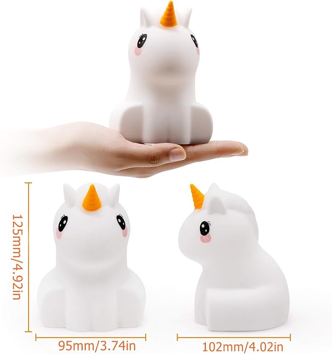 Night Lights Unicorn Nursery Lamp, Children Silicone Bedside Lighting Decorative Bedroom - Eye Caring, Adjustable Brightness & Color, Time Setting, Children's Gift Birthday Presents - Medium