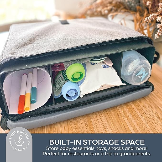 - ππ¨π§π―ππ§π’ππ§ππ π π¨π« πππ«ππ§ππ¬: This isn't just a booster seat for the dining table. Featuring a carry strap, it quickly and easily can be thrown over your shoulder for on the go adventures & the built-in storage gives you plenty of space to store the necessesities. Dine with confidence knowing you have a dependable high chair solution no matter where you are.