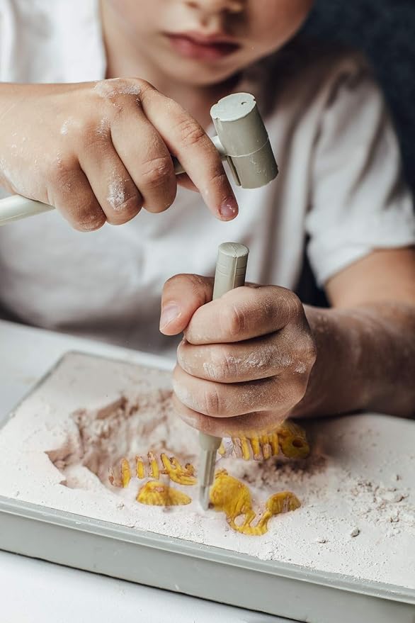 - 【Paleontology for Kids】No Dinosaur dig kit is complete if they don't have the best excavation tools. This science kit comes with all the archeology tools you need to dig your fossil: 1 excavation block, 1 fossil chisel, 1 fossil hammer.