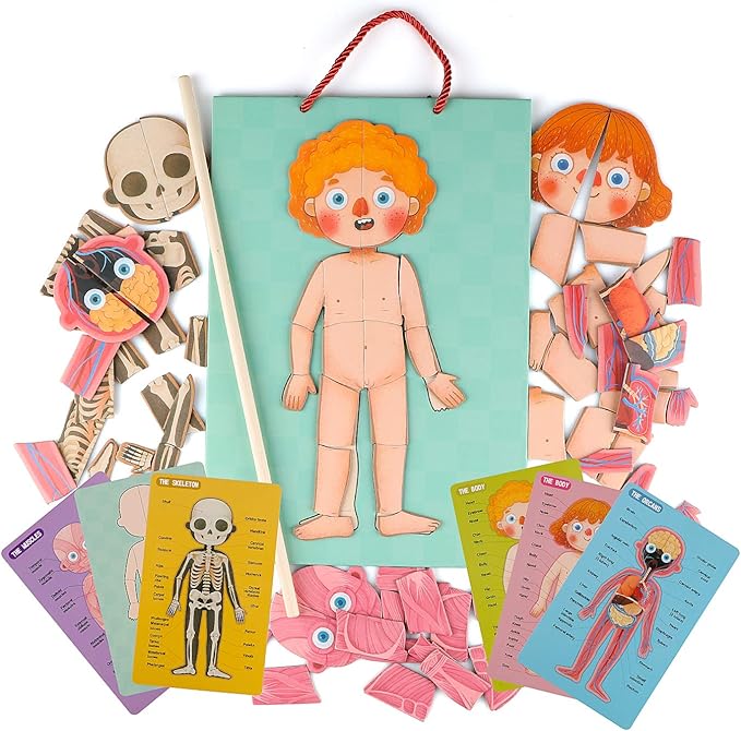 - Educational Toy & Gift: Comes in a gift box, suitable for Birthday gift, and Christmas, Halloween, Easter gift for girls and boys. It is also very suitable for use as a cognitive toy in kindergarten and learn about the body while playing. Kids will love to assemble this body part puzzle.