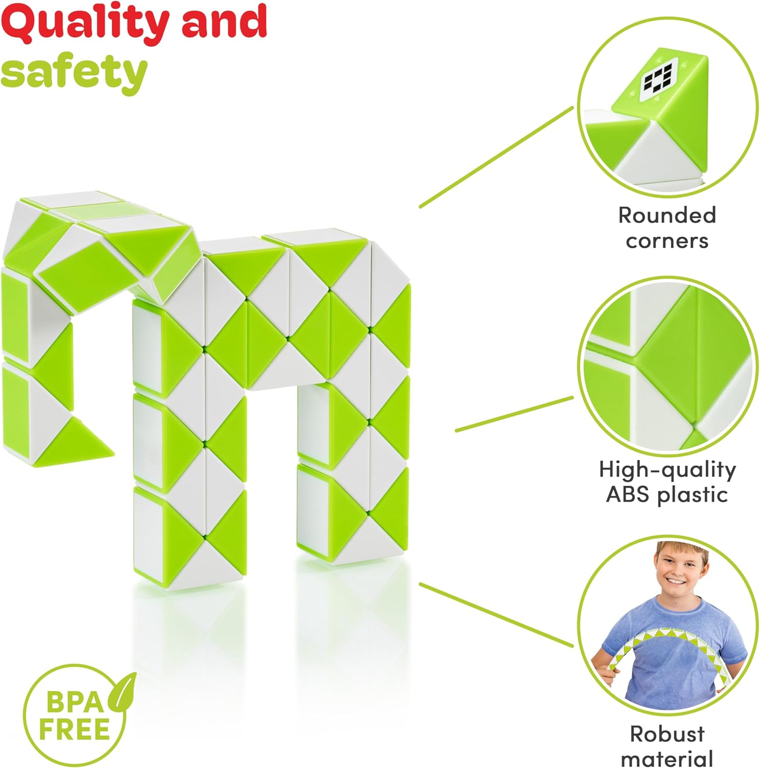 CUBIDI® Magic Snake Cube | Fidget Snake Toy for Kids | Travel Toys for Kids Ages 4-8 | Great Gift for Boys and Girls Birthday, Christmas, Stocking Stuffers - 48 Blocks | 0.9 inch x 0.7 inch | Green