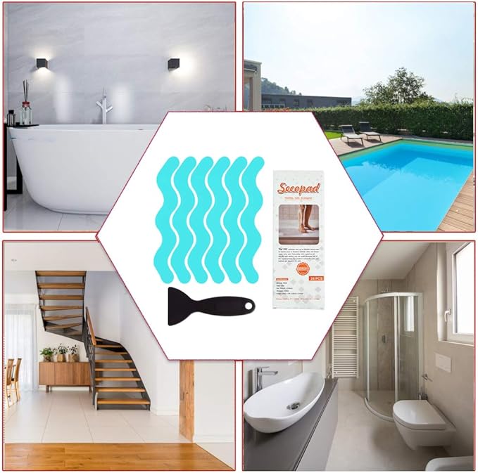 - The package comprises 24 pieces (0.8”x7.9”) of clear stickers alongside 1 high-quality silicone scraper. Ideally, the 24 stickers can occupy most of the surface of bathtub thereby reducing the risk of accidental slips. On top of that, you can even use these stickers on the stairs to make them much more secure.