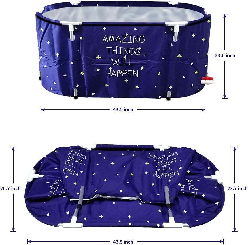 BESTHLS Portable Bathtub for Adult, Foldable Bathtub Portable Soaking Bath Tub,Eco-Friendly Bathing Tub for Shower Stall (Large Blue Sky)